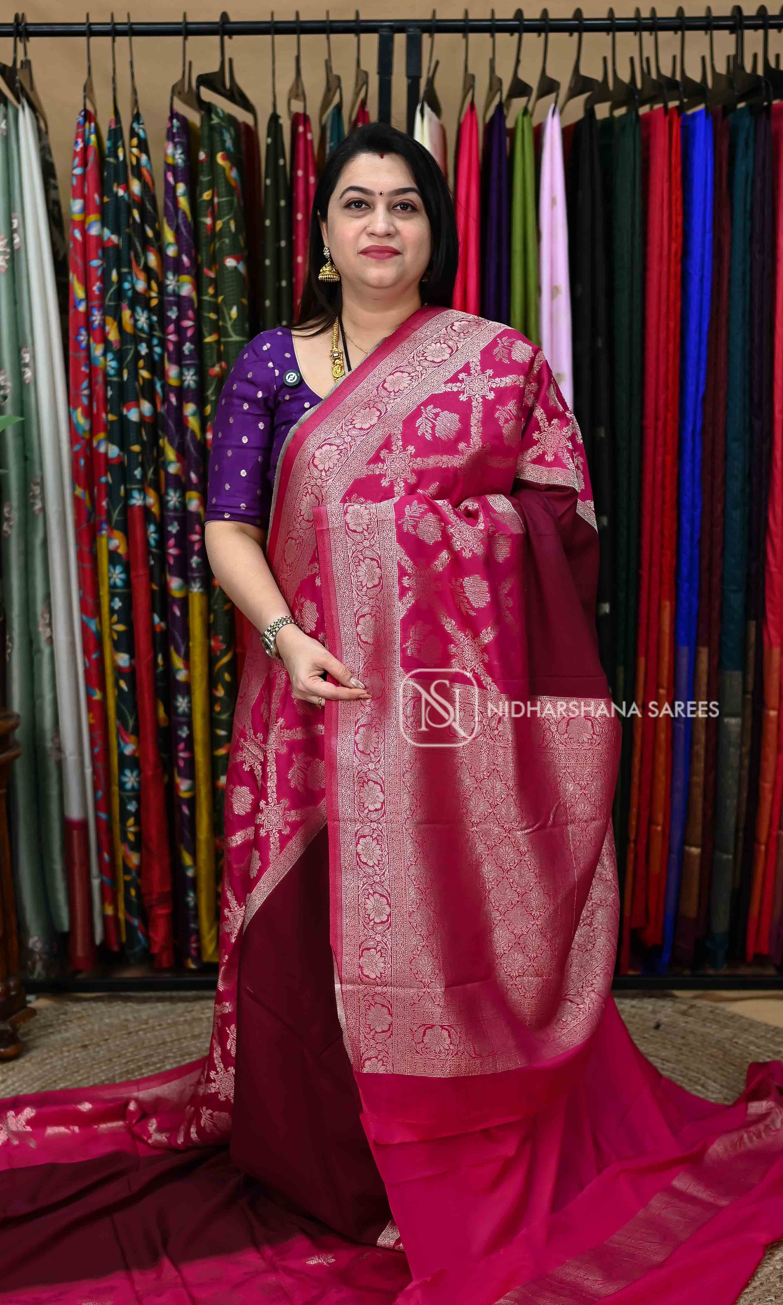 Experience the pinnacle of ethnic elegance with our latest arrivals, where timeless tradition meets 2026’s most coveted trends. Our newest collection at Nidharshana Sarees brings together a breathtaking array of drapes, from the regal luster of Kanchipuram Semi-Silks and Banarasi weaves to the breezy sophistication of Russian Dola, Organza, and Premium Georgette. Whether you are searching for a high-glam party wear saree, a sophisticated office-wear linen, or an opulent bridal ensemble, our new set covers every occasion with unmatched grace. Handpicked for quality and crafted for the modern woman, these arrivals also pair perfectly with our Custom Crafted readymade blouses. Explore our fresh drops today and find the perfect drape to celebrate your next big moment with authentic Indian craftsmanship and affordable luxury.