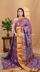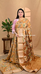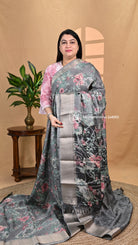 Semi Dola saree with a stylish checks body design. The fabric combines elegance with a modern touch, making it perfect for both traditional and contemporary occasions.