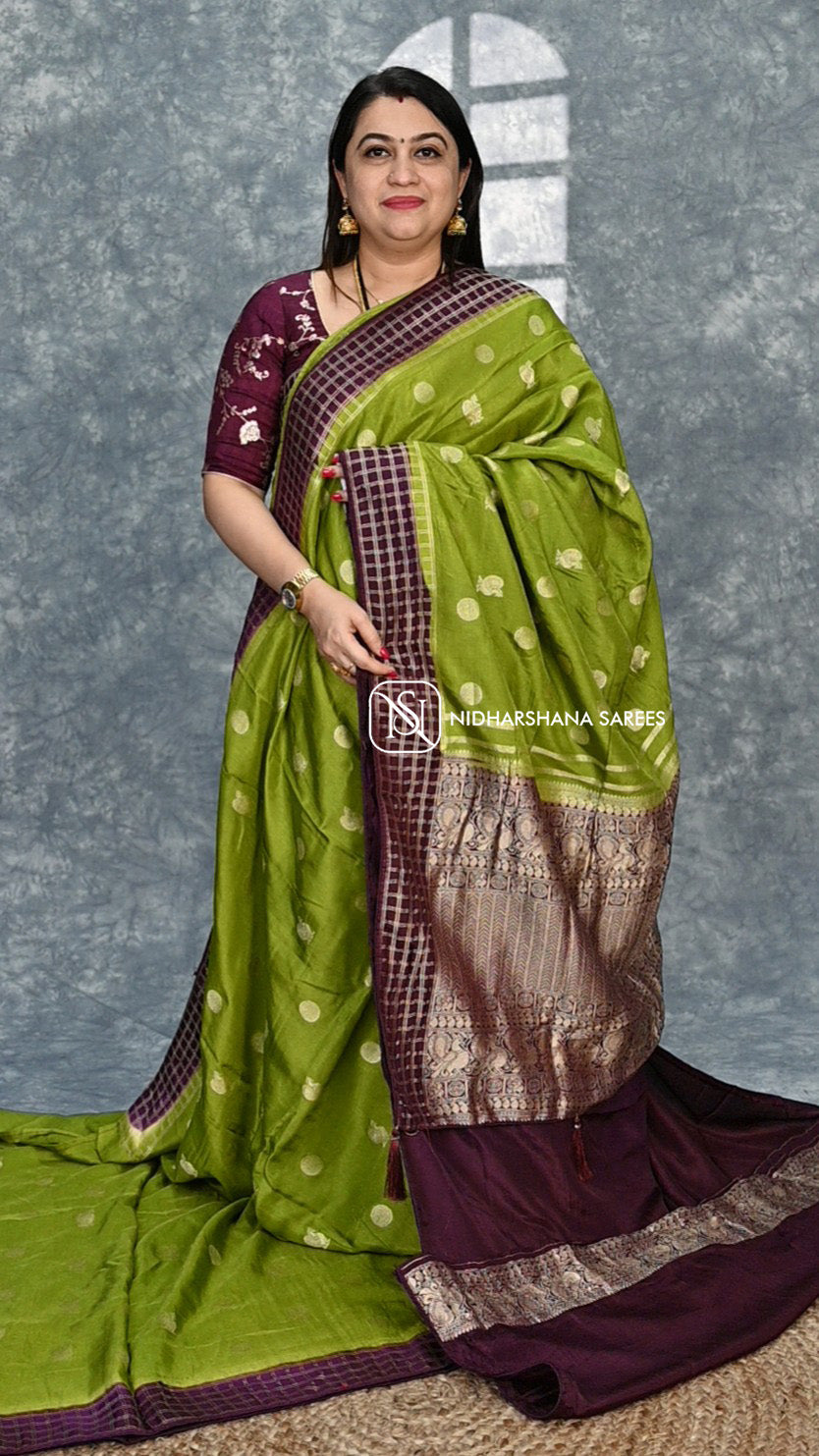 This Viscose Dola features a checked body design paired with a contrasting blouse piece, offering a sophisticated blend of pattern and color. Crafted from soft viscose, it ensures comfortable wear while maintaining an elegant drape, making it ideal for both formal and casual occasions.