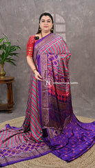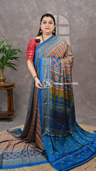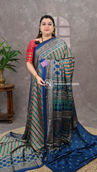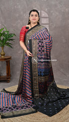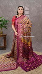 This semi modal satin fabric combines smooth, lustrous texture with an exquisite ajarak pallu, showcasing traditional craftsmanship. The soft drape and subtle sheen of the satin base enhance the intricate ajarak design, creating a luxurious yet comfortable fabric ideal for elegant, statement-making attire.
