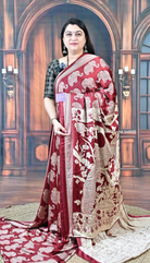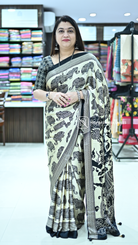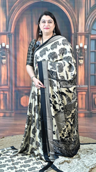 Modal Satin with Elephant Print Elevate your wardrobe with this sophisticated modal satin saree, featuring an intricate elephant print that blends traditional artistry with contemporary elegance. The luxuriously soft modal fabric drapes beautifully, offering exceptional comfort and a refined sheen that catches light gracefully. The elephant motif—a symbol of grace and strength in Indian heritage—adds distinctive character to this versatile piece. Perfect for festive occasions, celebrations, or elevated everyday wear, this saree combines premium fabric quality with timeless design. The smooth, breathable modal construction ensures all-day comfort without compromising on style.