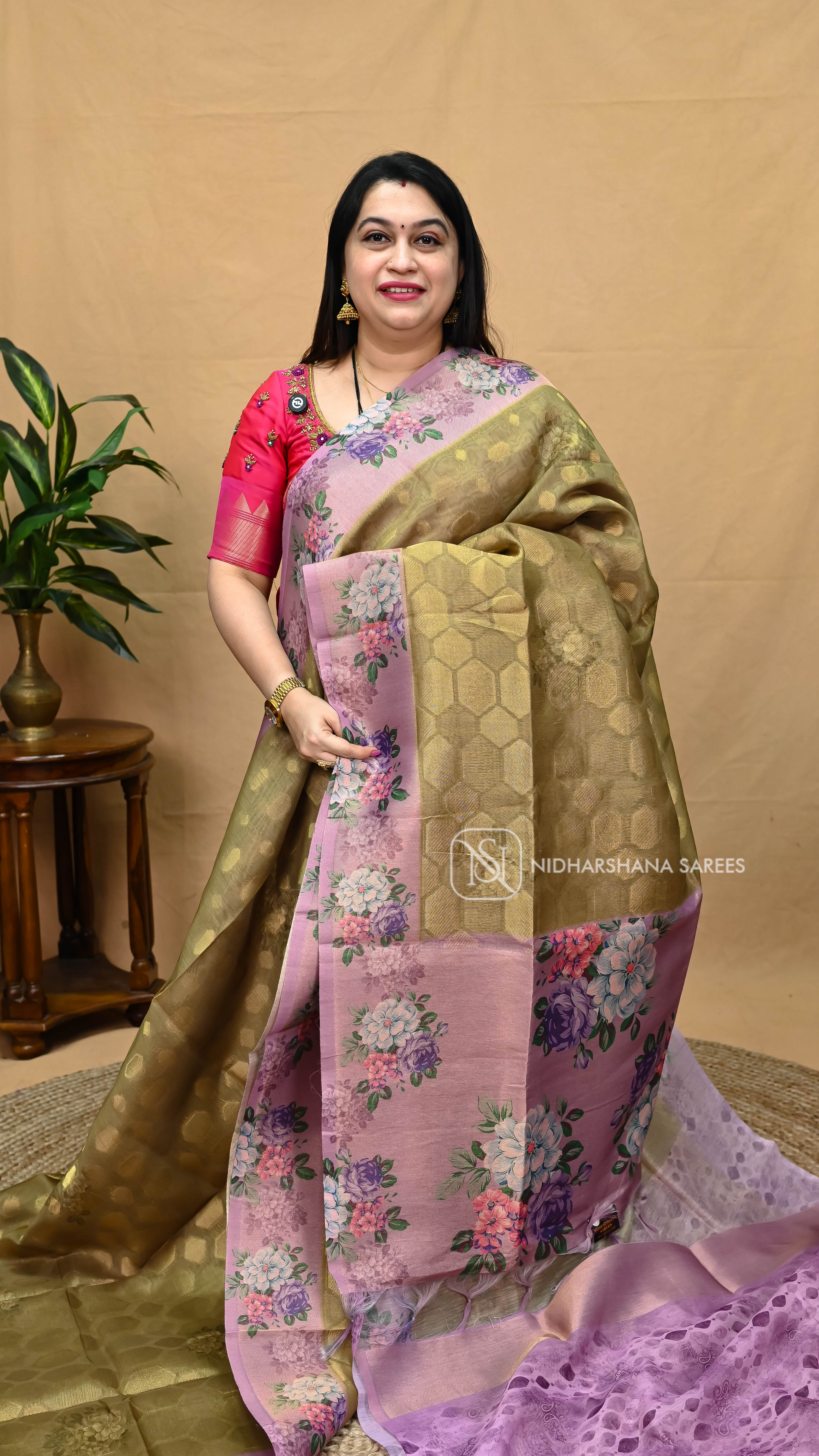Crush Banarasi With Floral Digital Print