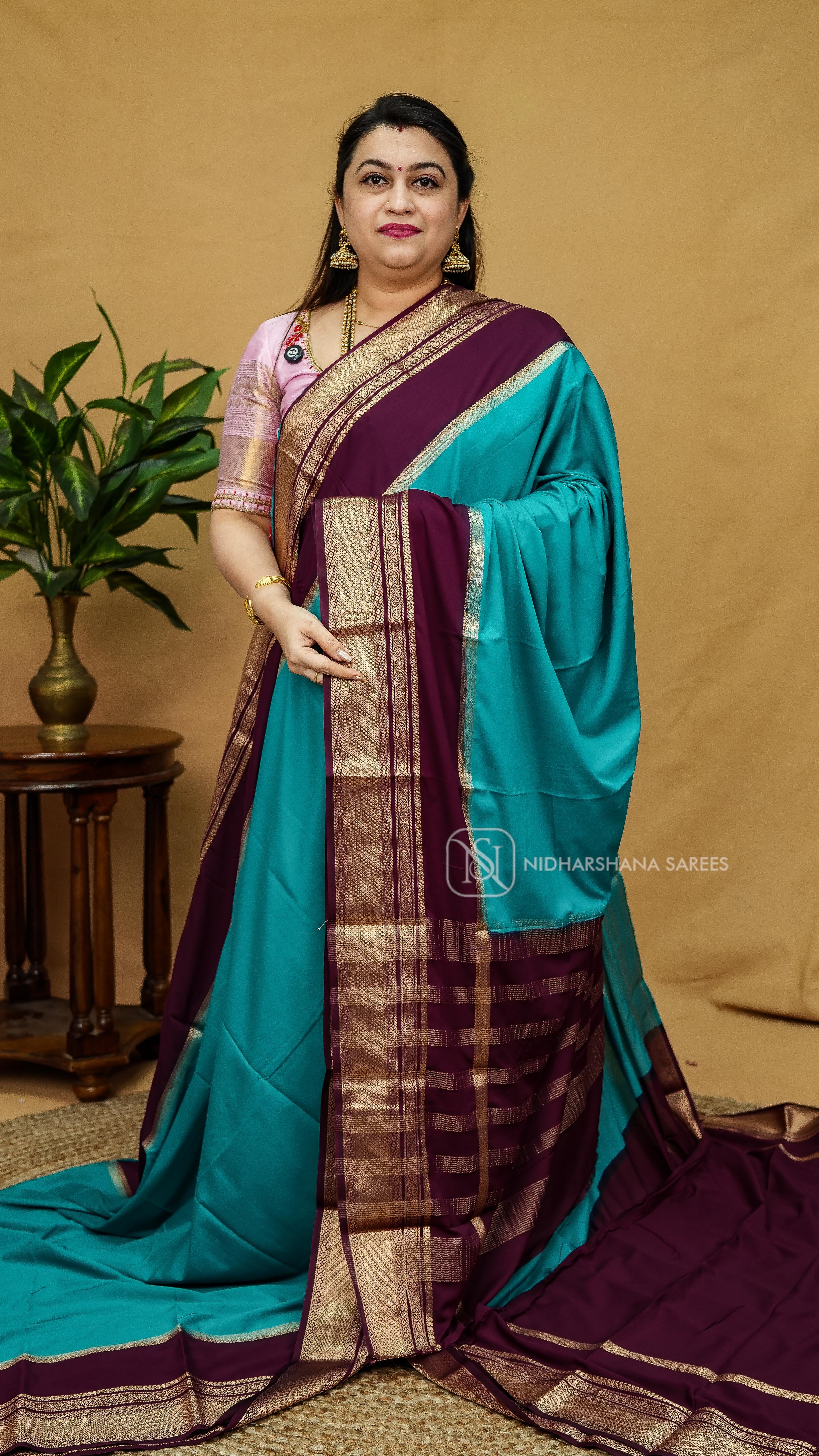 Elevate your saree collection with this Semi Mysore Crepe Silk, a masterpiece that seamlessly blends traditional elegance with contemporary comfort. Crafted from premium crepe silk, this saree offers a luxurious drape with a subtle texture that catches light beautifully. The semi-Mysore weave ensures durability while maintaining the fabric's signature softness and breathability, making it ideal for both festive occasions and everyday celebrations. Perfect for those who appreciate refined craftsmanship and timeless sophistication.