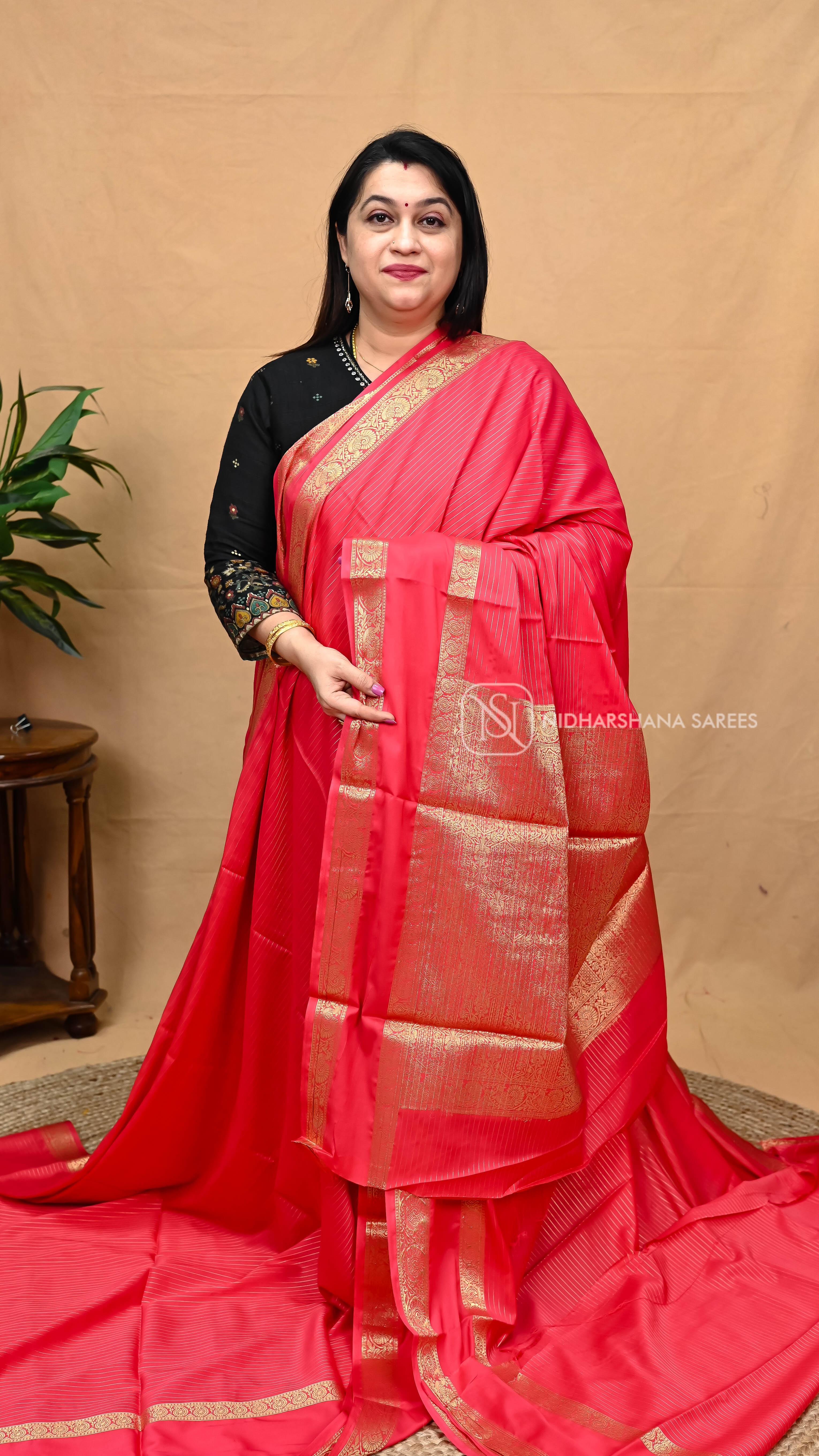 Drape yourself in timeless elegance with this Semi Mysore Crepe Silk saree, a perfect blend of tradition and contemporary style. The luxurious crepe silk fabric offers a soft, fluid drape that flatters every silhouette, while the rich red and peach color combination brings warmth and sophistication to your ethnic wardrobe. Crafted with meticulous attention to detail, this saree showcases the finest qualities of Mysore silk weaving. The crepe texture adds subtle dimension and movement, making it ideal for festive occasions, celebrations, and special gatherings. The color palette transitions beautifully between deep red and soft peach tones, creating a striking visual appeal. Perfect for the discerning woman who values qualityProduct Details