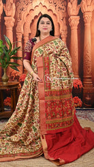 Semi Tussar Video-37 features authentic Warli prints enhanced with intricate katha stitching, showcasing traditional artistry on a rich semi tussar fabric. This saree blends cultural heritage with elegant craftsmanship, offering a unique texture and visual appeal perfect for stylish, art-inspired occasions.